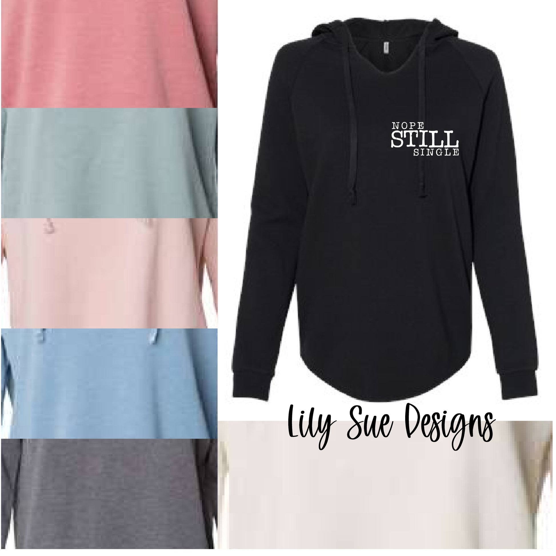 Hooded light weight sweatshirt. Screenprinted designs. Womans fit size chart included.